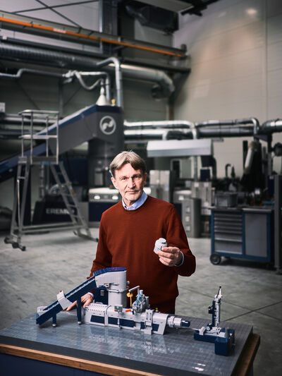 Zum 40-jährigen Firmenjubiläum von Erema wurde ich beauftragt, Portraits von Schlüsselfiguren für die Festschrift anzufertigen. Jede Person sollte mit einer Doppelseite für Interview und Portrait gewürdigt werden, da kam schnell die Idee auf, statt gewöhnlicher Businessportraits passende Bildideen zu den jeweiligen Inhalten aus den Interviews zu finden. Ein herzliches Dankeschön an Erema für das entgegengebrachte Vertrauen!